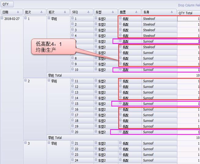 APS高级计划排程系统根据汽车总装车间的生产特点,设计了灵活、通用的高级计划排产平台,可以通过自定义参数的方式来实现汽车生产计划排程过程考虑的均衡、批量、比例等问题,解决了汽车生产过程中车型批量生产的问题,高低配均衡生产配比问题,以及喷涂车间最小单位批量颜色生产的问题,提高了车间的生产效率,也提高的计划排程的效率,节省了计划手动排程的时间,使得计划排程的结果更加科学、合理。